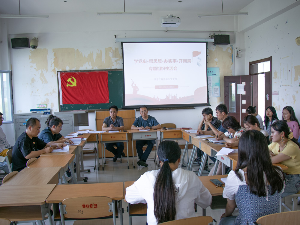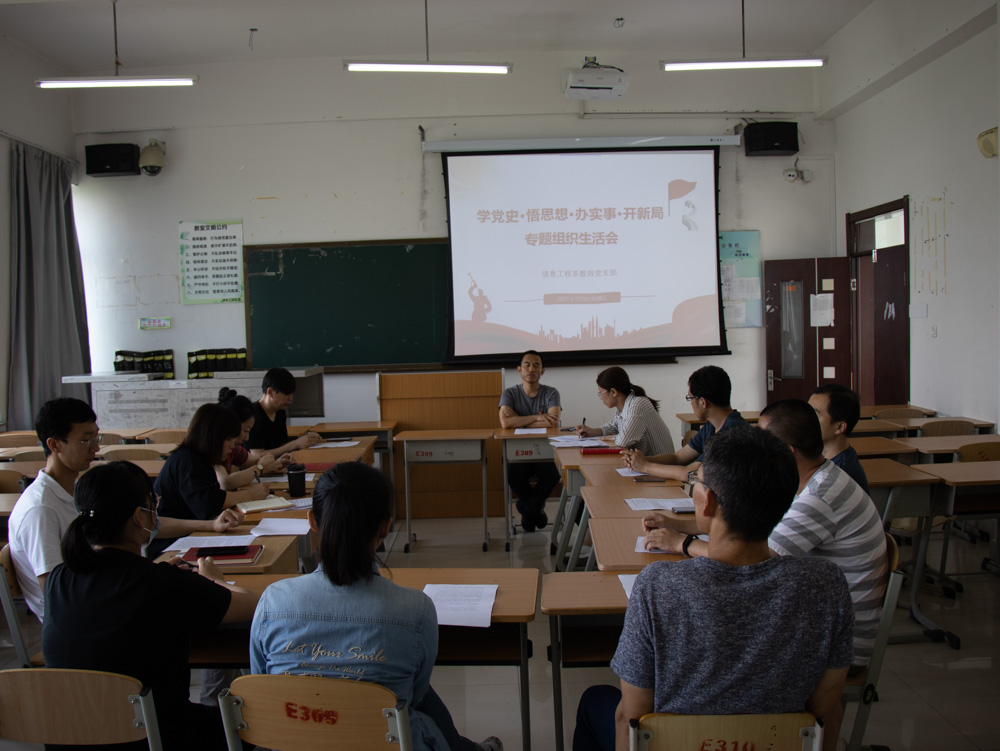 7月9日中午12:30,信息工程系教师党支部、学生党支部分别在E308、E309教室召开了2021年党史学习教育专题组织生活会,教师党支部由支部书记闫永霞主持,学生支部由信息系党总支副书记张国庆主持。