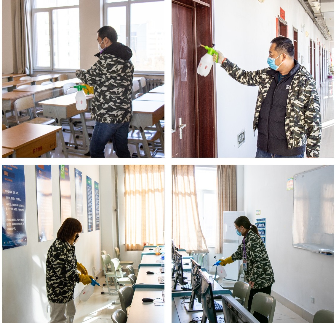 活动现场,组织教师党员对学生进行了疫情防控知识宣传工作,引导大家养成戴口罩、不聚集、勤洗手的好习惯。 随后组织大家对信息馆进行全面消毒工作,尤其对机房、实训室、多媒体教室等易感区域进行重点清理消毒。