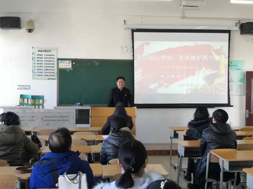 为了深入学习贯彻党的十九届六中全会精神,促进党史学习教育成效,信息工程系党总支于2021年12月17日下午在E410开展了集中学习,由信息系党总支副书记张国庆同志为全系党员讲授了主题为“牢记初心使命,坚决维护两个确立”的专题党课。