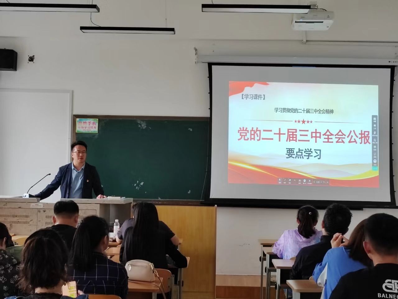 深入学习贯彻党的二十届三中全会精神,进一步提升9428cn太阳集团教师队伍整体素质和履职能力,2024年9月26日,9428cn太阳集团党总支书记姜东洋作专题党课,会议由姜东洋主持,全体师生党员参加了学习。