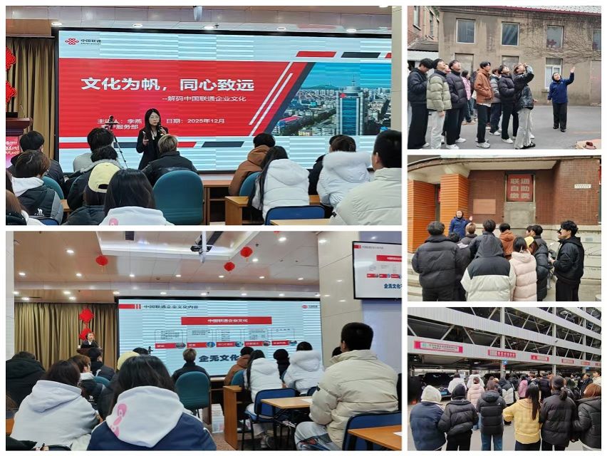活动伊始,丹东联通人力资源部经理万众致辞,明确本次活动旨在搭建校企协同育人桥梁,助力学生提前适应职场、融入企业文化,并期望学生珍惜机会,夯实专业基础、提升实践能力大家珍惜此次学习机会,主动思考、积极交流,在吸收企业文化养分的同时,夯实专业基础,提升实践能力。随后开展“文化为帆,同心致远”主题授课,丹东联通客户服务部资深技术骨干李艳化身“企业导师”,为订单班学生带来了一场生动深刻的企业文化盛宴。重点讲解中国联通“客户为本、创新为魂、奋斗为基”“创新为魂、奋斗为荣、清廉为洁”的核心价值观,阐释“严、实、精、细、快”的企业作风,通过真实案例阐释了企业文化的引领作用,并结合计算机网络技术专业特性,剖析了企业文化在技术服务、团队协作中的融入要点,强调网络技术工作需坚守严谨务实态度、强化协同创新意识,在学习中更要涵养联通“两心两力”——进取心、学习心与思考力、执行力。互动环节,学生们围绕企业文化与职业发展的关联、岗位能力需求等问题进行交流,有效激发了学生的岗位的认同感与职业归属感。理论学习后,企业导师带领学生走进丹东联通观摩,直观感受企业发展历程与技术实力,深化对企业发展的认知。