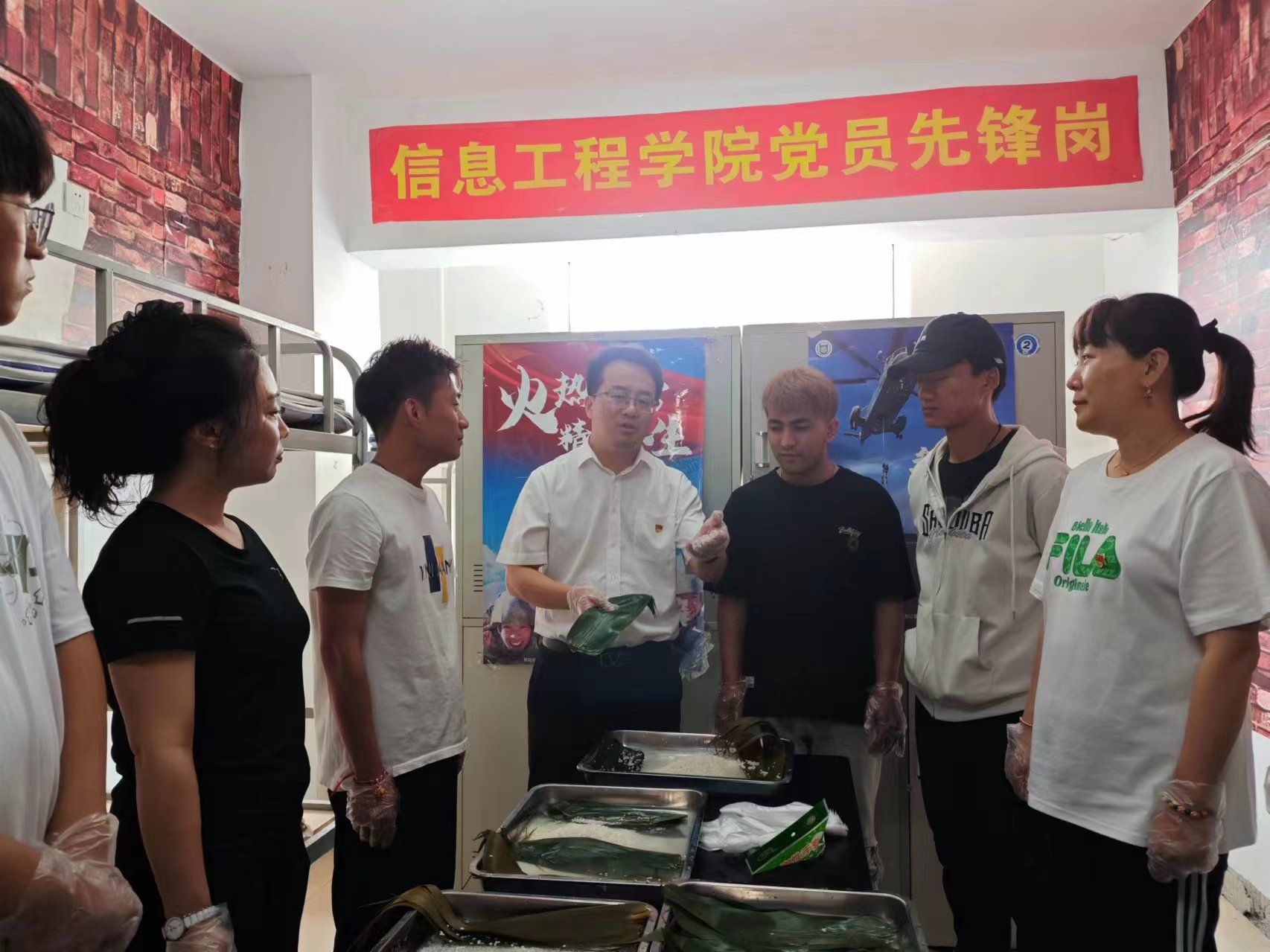 来自维吾尔族、藏族、满族、回族、汉族师生围绕在一起,叠粽叶、装糯米、包粽子。姜东洋书记给学生讲解了端午节的起源故事与传统习俗。少数民族同学纷纷讲述了各民族的传统文化节日、文化习俗,师生们相互系上了带有祝福、美好寓意的五彩绳,现场节日气氛浓厚。同学们表示,校园生活让他们感受到了中华传统节日的内涵,体会到了劳动的快乐,进一步增强了对中华民族的归属感、对中华文化的认同感、对伟大祖国的自豪感。