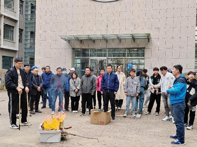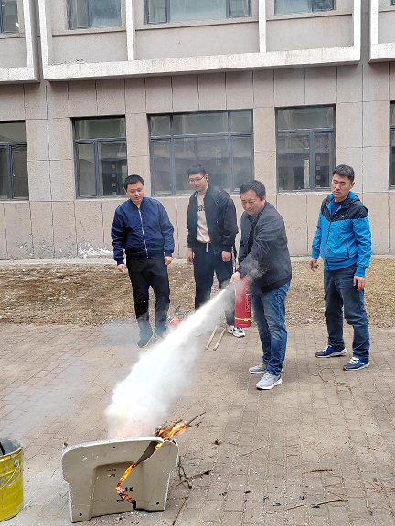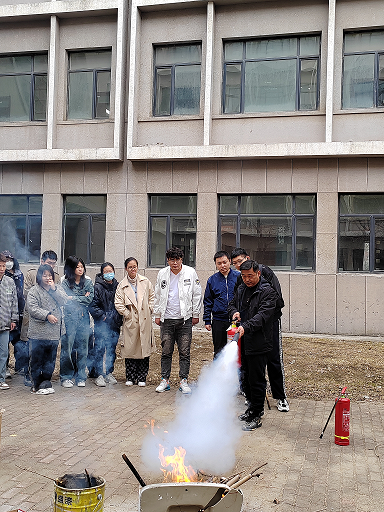 随后,保卫处杨老师讲解干粉灭火器与二氧化碳灭火器的区别及应用,并亲自示范操作灭火器使用步骤。整个演练过程中,师生们集中思想、听从指挥,力争达到灭火器人人会用的目的。