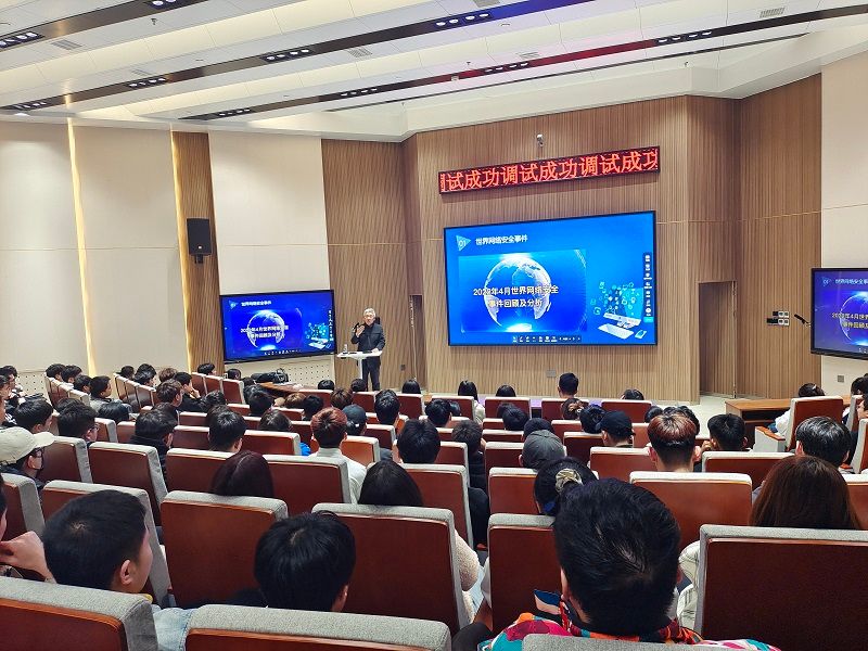 首先由管辉经理从3个方面深入分析了网络安全行业现状:世界网络安全事件回顾与分析;二、国家网络安全战略;三、网络安全相关企业发展。随后由汪晓玉经理分析了网络安全行业人才需求和学习建议,并介绍了全国护网行动相关内容。最后,专家和参会师生们进行现场互动,专家现场解答师生们提出的问题,通过互动更深入的探讨交流网络安全相关问题。