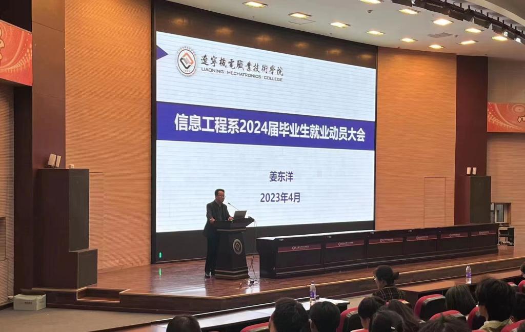 为提升我系毕业生就业意识和竞争力,信息工程系于4月25日召开2024届毕业生就业动员会。会议在大学生素质中心四楼报告厅举行,参加会议的有信息工程系副主任姜东洋、毕业班辅导员及2024届毕业生。