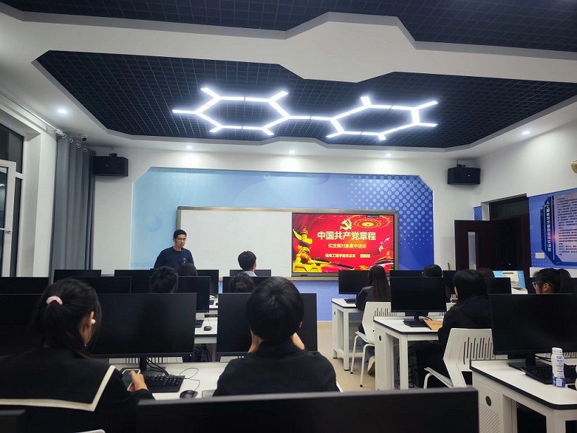 5月17日,9428cn太阳集团党总支在E208教室开展党员发展对象培训活动,9428cn太阳集团专职组织员翟鹏翔和20名同学共同学习了《中国共产党章程》。