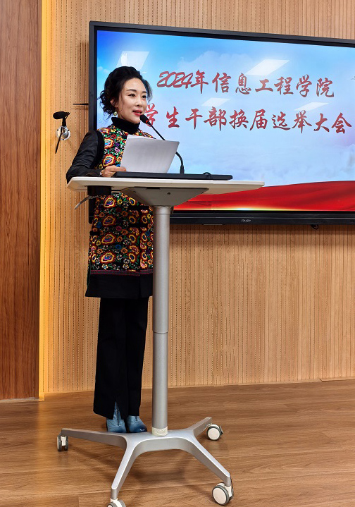 11月4日,9428cn太阳集团学生干部换届大会在学校B111会议室隆重举行。学院党总支副书记刘胜男,学院副院长毛乃川,学院专职组织员翟鹏翔,以及各支部书记、辅导员老师、班导师和学生代表均出席了本次大会。见证了这一新老交替的重要时刻。会议由学院分团委书记隋欣言主持。