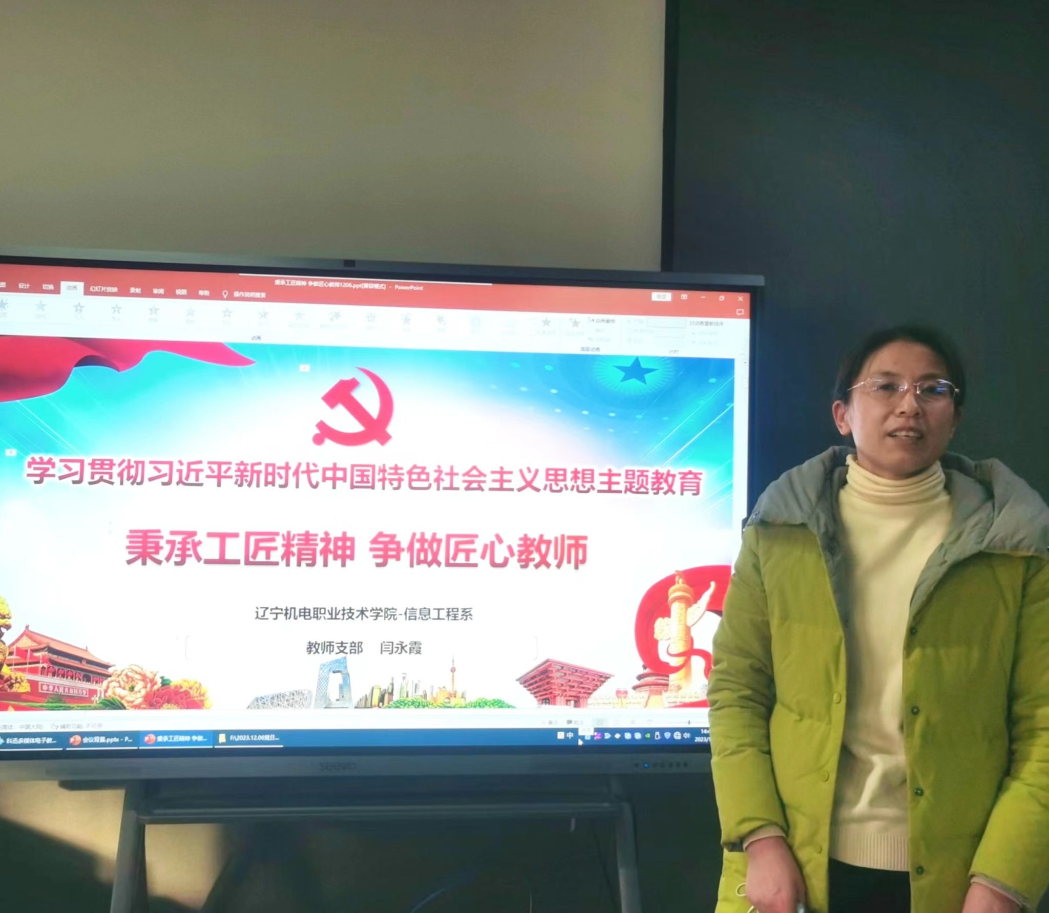 为深入学习贯彻习近平新时代中国特色社会主义思想和落实党的二十大精神要求,根据9428cn太阳集团党总支主题教育具体内容安排,12月6日下午,9428cn太阳集团教师支部和学生支部联合开展向身边榜样学习——“秉承工匠精神 争做匠心教师”主题党日活动,活动由9428cn太阳集团党总支副书记黄述利主持。
