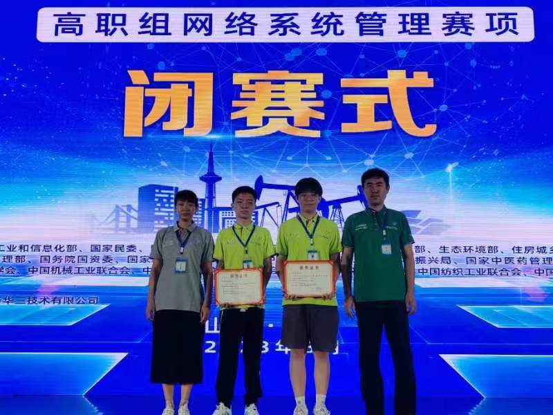 8月21日,2023年全国职业院校技能大赛高职组“网络系统管理”赛项在山东东营职业学院落下帷幕。本次大赛共有来自全国73支参赛队伍,我院信息工程系储佳蕤同学、赵宁同学在教师李建光、卢晓丽的指导下,荣获团体三等奖。