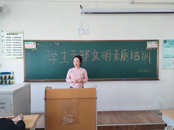 首先,隋欣言指出作为学生干部要有榜样意识,不论是学习工作或是平时生活中都要注意言行,时刻把服务同学放在第一位。其次,在学生和老师之间的沟通过程中,要注意自己方式方法。隋老师提到:文明礼仪不单单是“你好、再见、谢谢 ”的词汇,同时也要注重的自己的仪容仪表,不要出现奇装异服,特殊发色。文明礼仪不是表面功夫,作为学生干部要把文明礼仪当成一种习惯。最后隋欣言引用了一句古语“不患位之不尊,而患德之不崇;不耻禄之不伙,而耻智之不博。”意为:不要担心职位不够高,而应该想想自己的道德是不是完善;不要以自己的收入不够高而感到耻辱,而应该想想自己的学识够不够渊博。这里她指出,作为中国人德即是心,如果没有德那么不论多么讲文明懂礼貌都也不过是表面功夫。